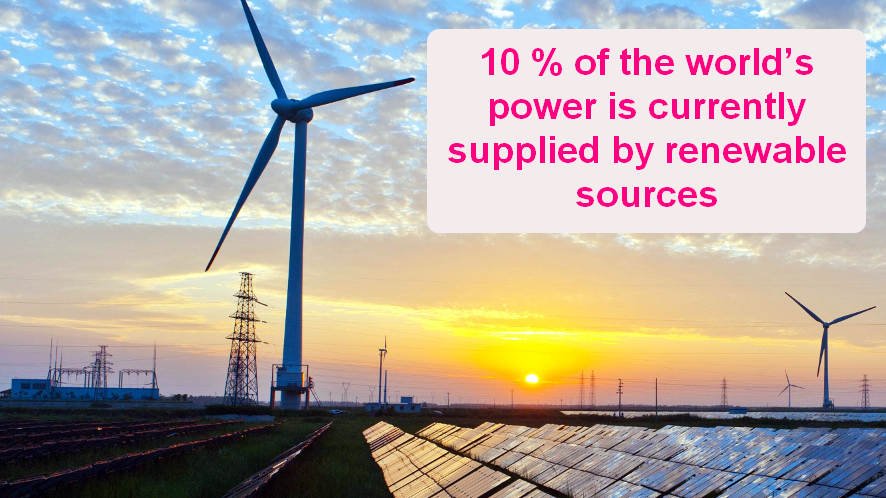 10 percent of the world’s power is currently supplied by renewable sources like wind and solar.